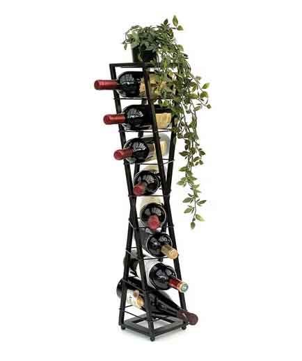 Estante para Botellas de Vino de Metal, Columna de Flores Negra Esperanza de 80 cm, Estante de Exhibición de Vino de Doble Propósito/Almacenamiento de Plantas