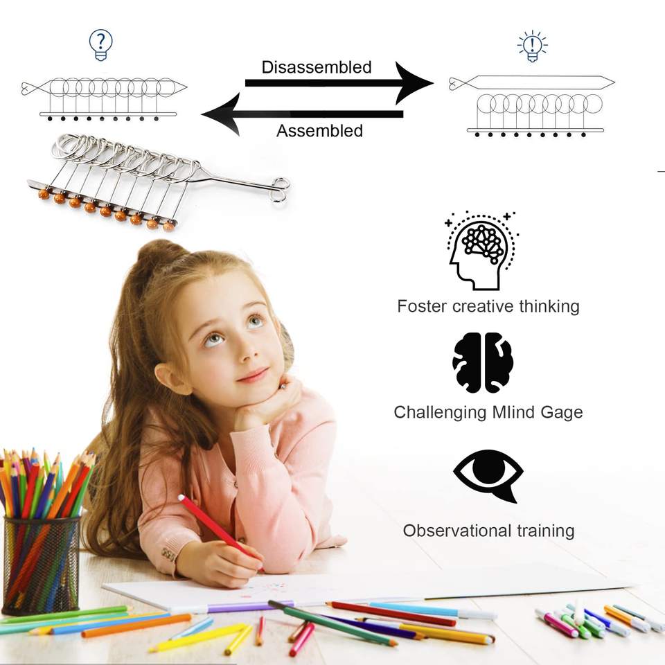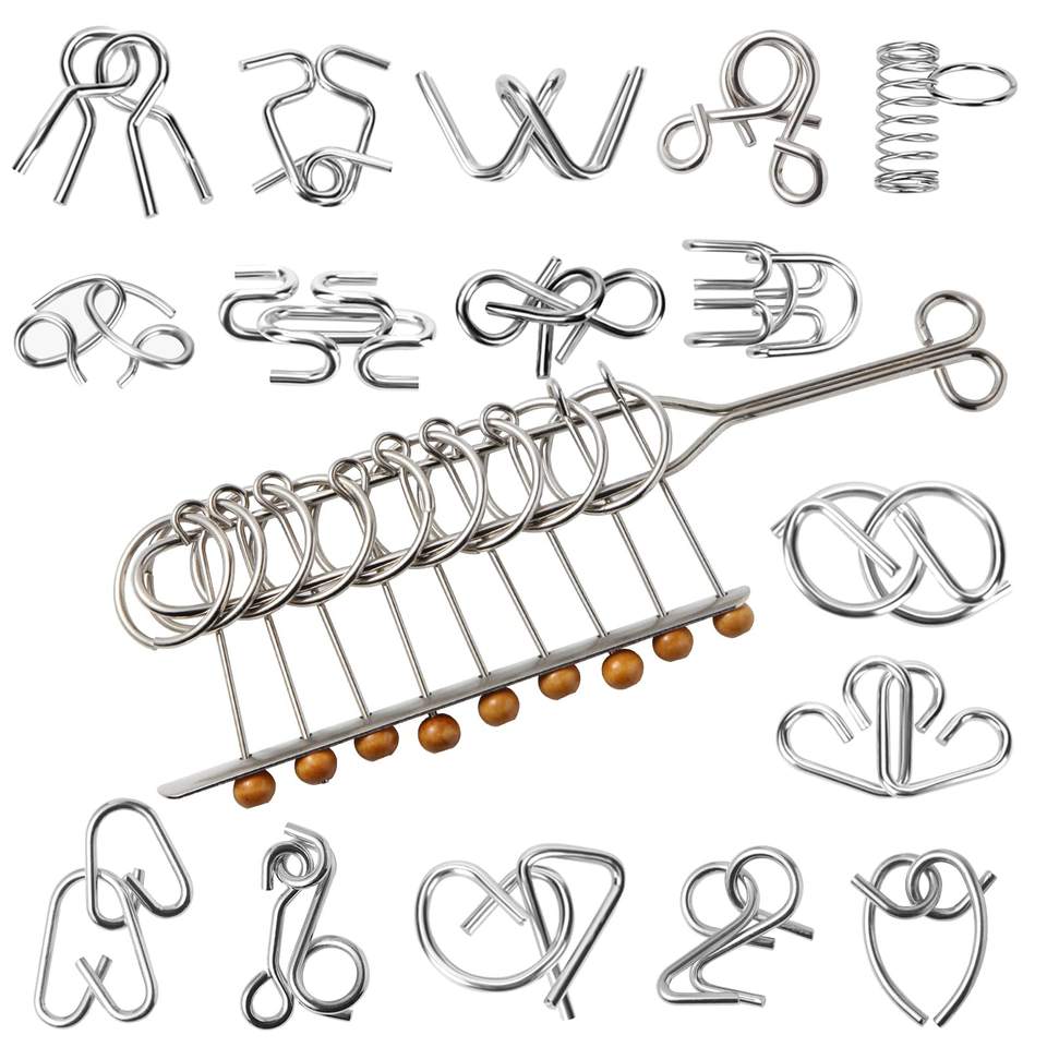 Rompecabezas de alambre de metal, rompecabezas IQ Test anillo chino juguete de truco de magia, kit de rompecabezas de alambre de metal para niños