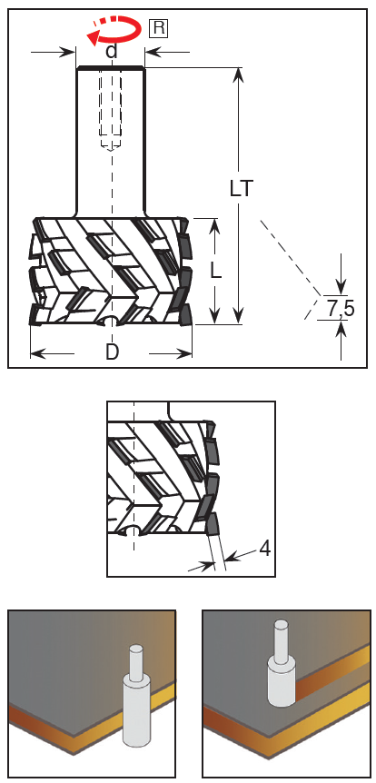 Metal World Steel Body DP Puntas soldadas DP Router Bits - Axial 40 grados ejecutados con tres o cuatro principios de corte
