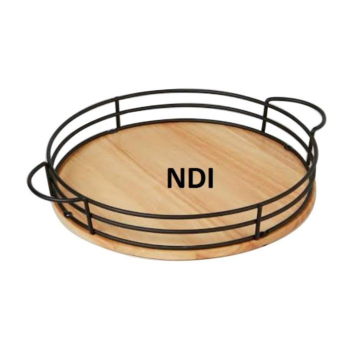Bandeja de servicio redondeada de metal y madera Aperitivos hechos a medida Bandejas dulces a la venta Servidor de desayuno Acabado negro Diseño exclusivo