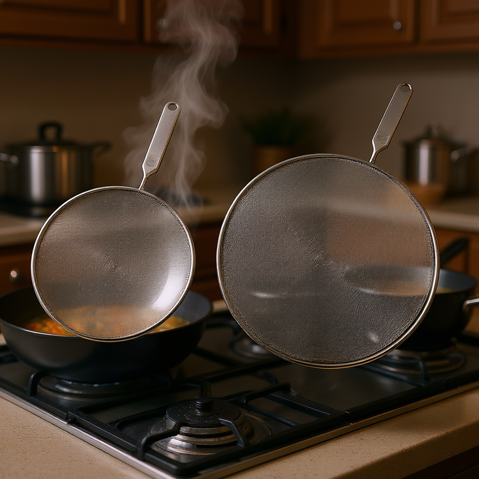 Juego de Protectores Antisalpicaduras MetalTex de 2 Piezas, 20 cm y 29 cm, Tapas de Acero Inoxidable para Cocina