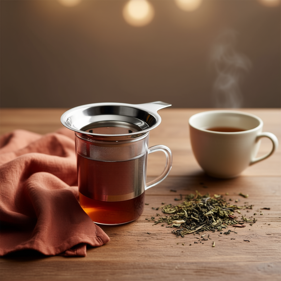 Colador de té MetalTex con mango, infusor de acero inoxidable para té de hojas sueltas