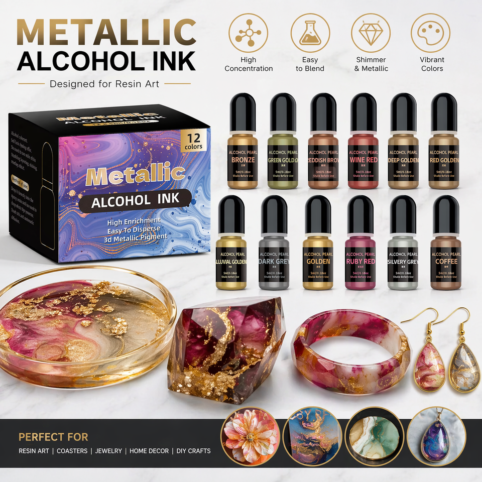 Tinta de Alcohol Metálica, Pigmento Líquido Brillante para Arte en Resina Epoxi, Colorante de Alta Concentración para Manualidades, Pintura, Arte