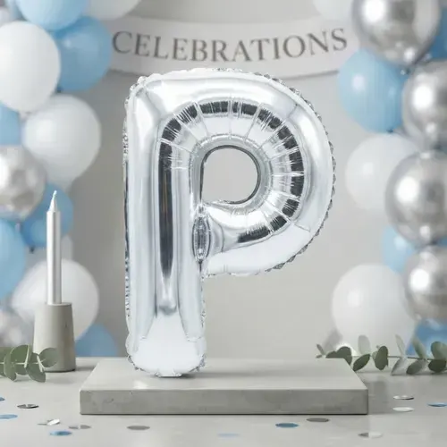 Globo Metálico con Letra P en Color Oro Rosa, Decoración Elegante