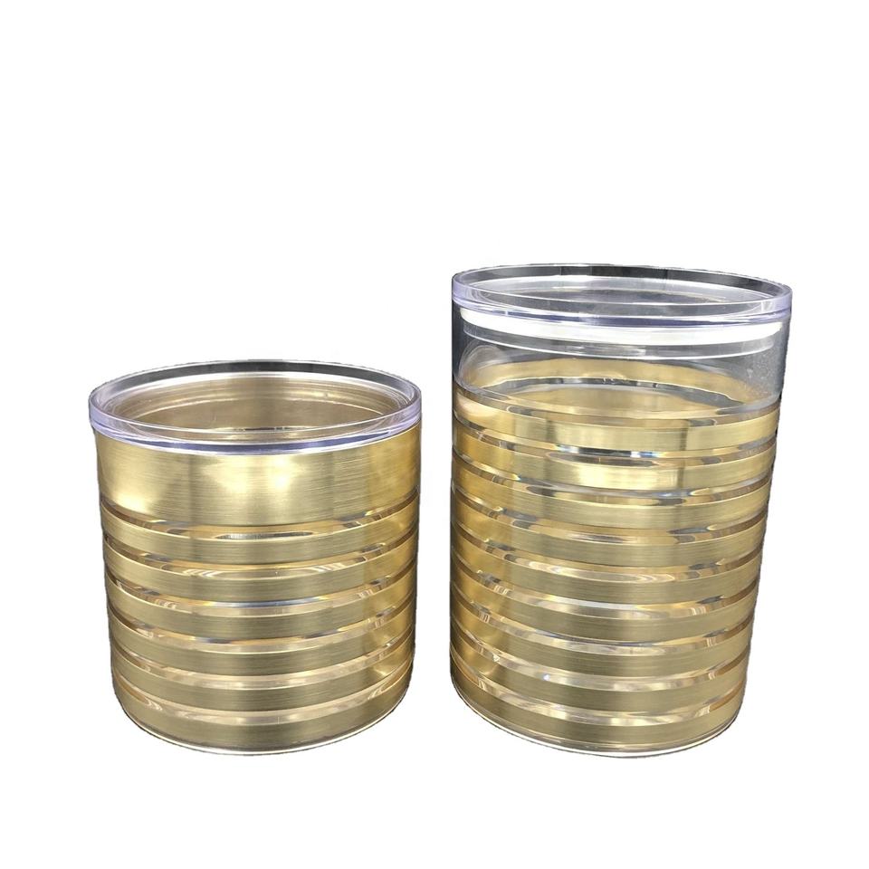 Caja de dulces de galletas de acrílico hermética de oro metálico