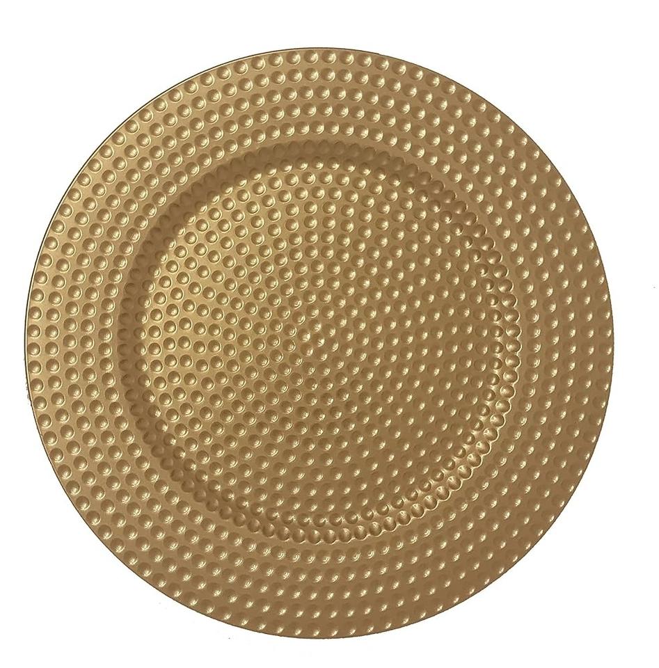 Plato Base Metálico Dorado con Acabado Martillado para Restaurantes y Fiestas, Vajilla al por Mayor, Plato Base Metálico Personalizado