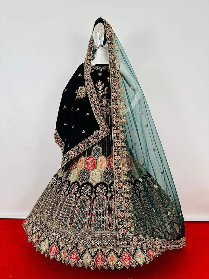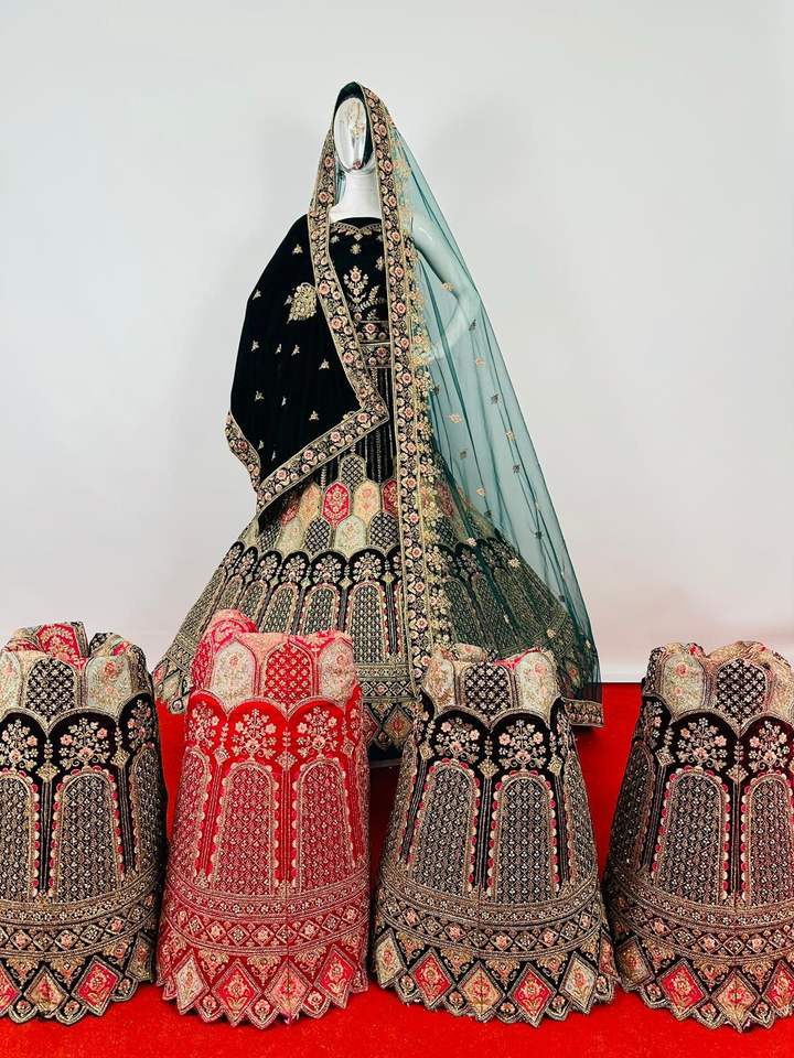 Mewar Rajwada Heavy Velvet Bridal Set para adultos Full Jarkan con Multi Work Double Dupatta 5 diseños y 5 colores