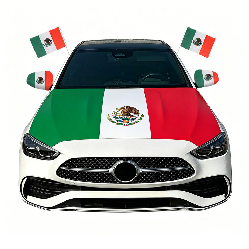 Bandera Mexicana para Capó de Coche, Tela de Poliéster Elástica para Motor, Bandera para Espejo Retrovisor de Ventana