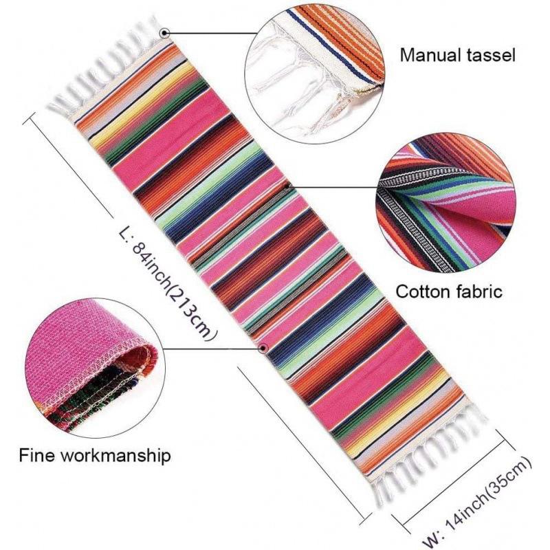 Camino de mesa mexicano Selap de poliéster/algodón de 14 "X 84" tejido a rayas geométricas borla de mesa ecológica bandera comedor boda