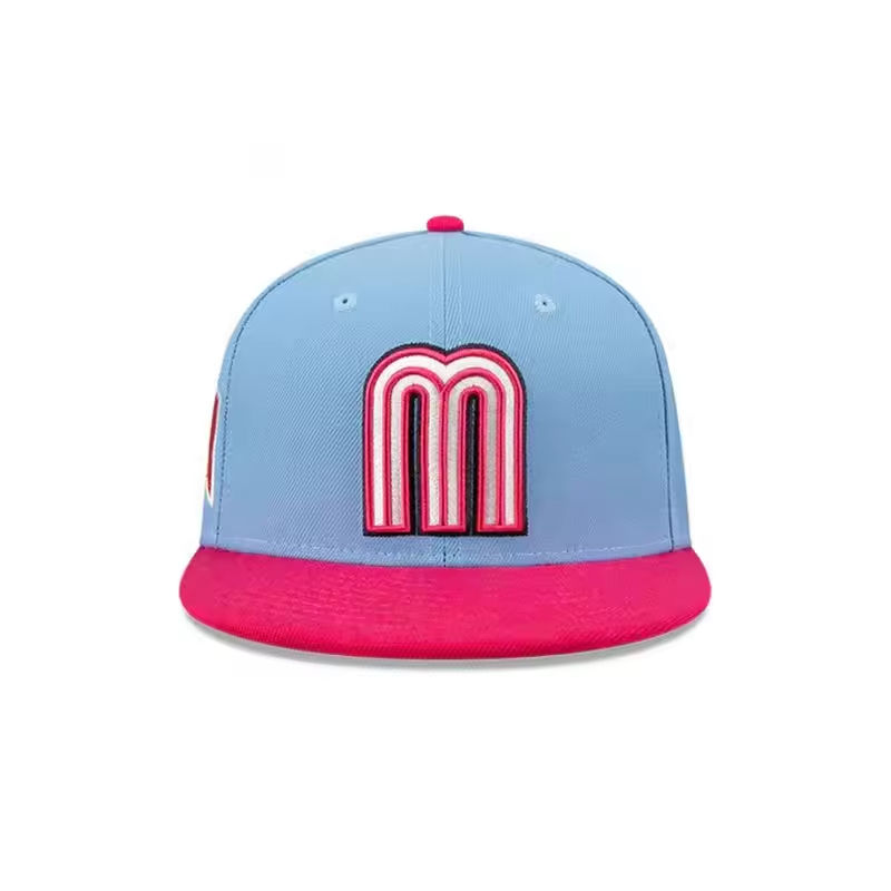 Gorra de México con logotipo bordado en 3D de poliéster, nueva gorra con cierre personalizado, gorras ajustadas con ala de béisbol plana para hombres