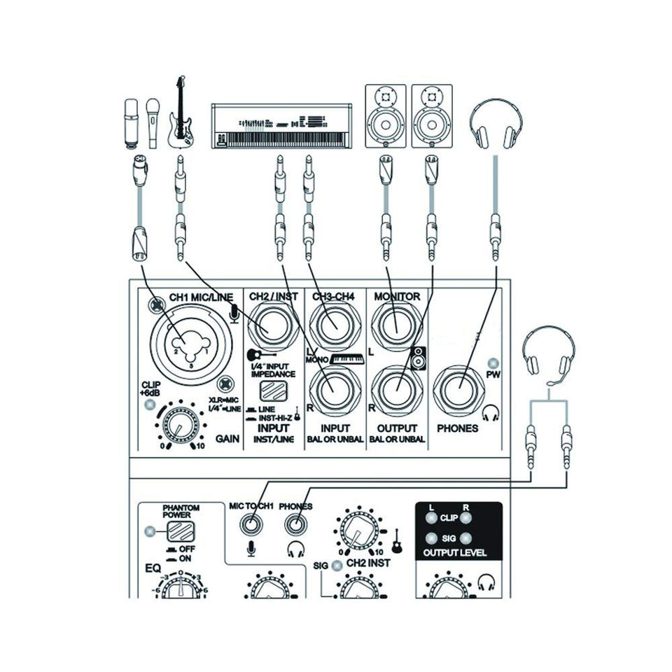 De entrada:Conector de entrada de micrófono/guitarra/línea