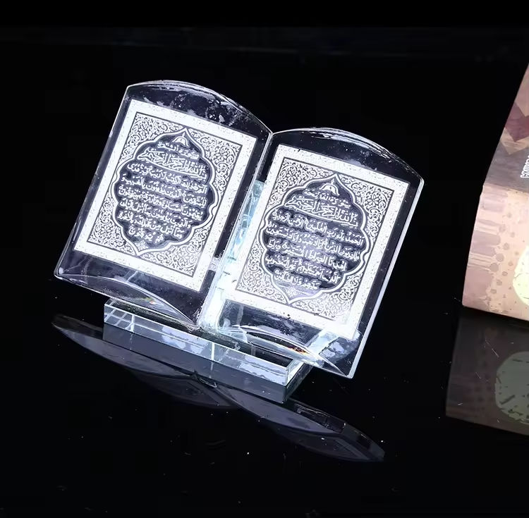 Mh-js066 de plata con estampado religioso, libro de recuerdo de cristal islámico del Corán
