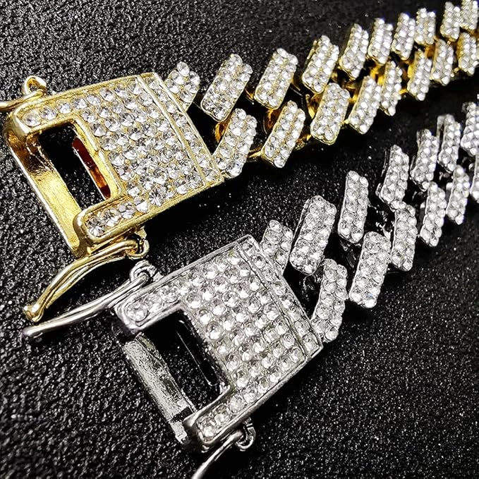 Collar de Plata de Ley 925 Miami Estilo Rapper, Cadena Cubana y Pulseras de Eslabones con Corte Redondo, Estilo Hip Hop Chic Cubano