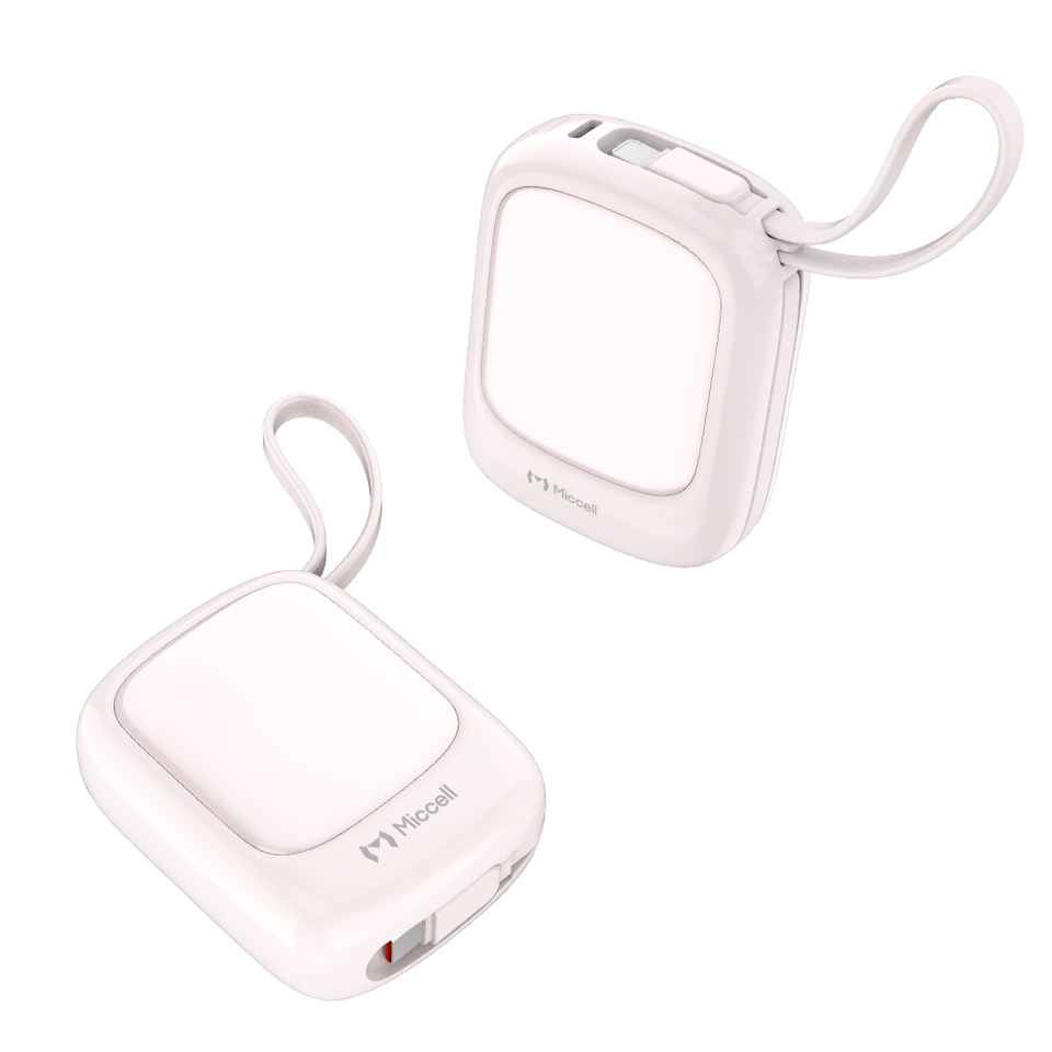Batería Externa Miccell Mini de 10000 mAh con Carga Rápida de 22.5 W y Cables Dobles para Viajes, Estudiantes y Trabajadores de Oficina