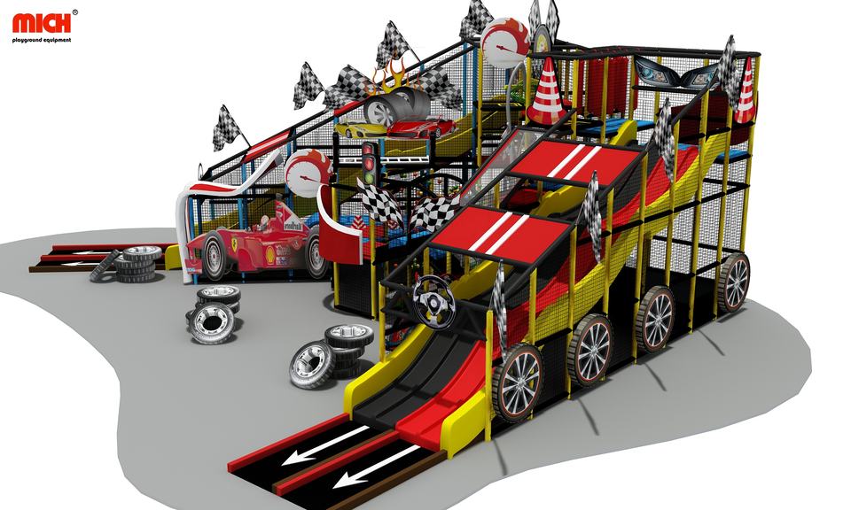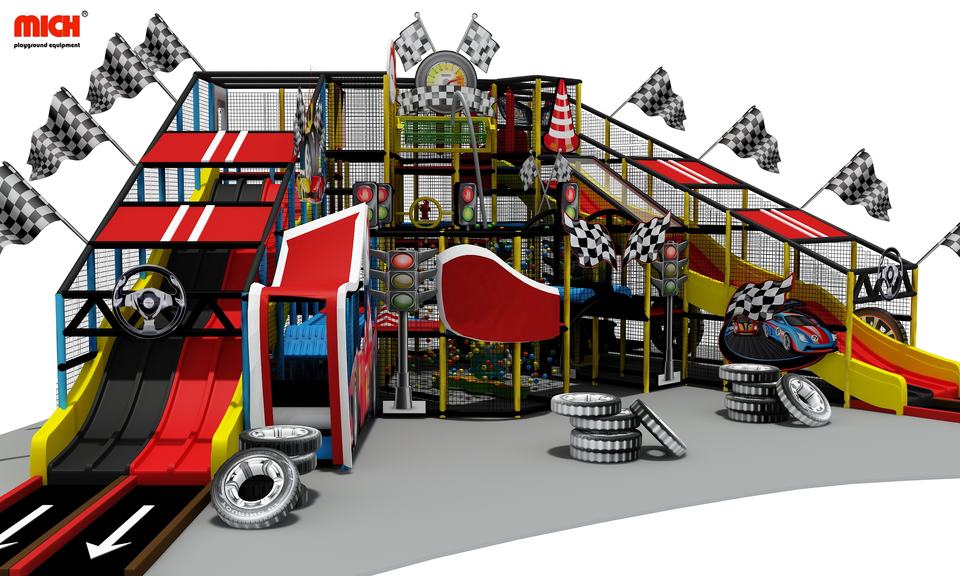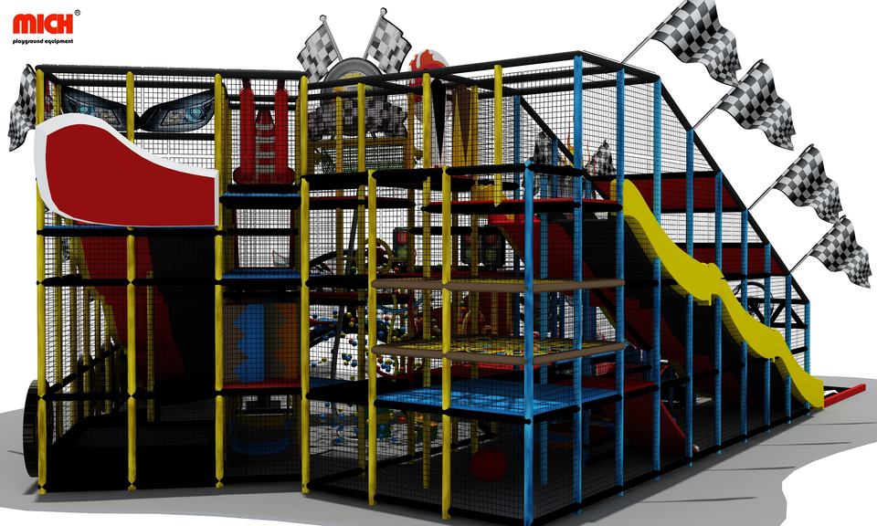 Mich CE Certificado Fórmula Uno Rectángulo temático 300 Sqm Kids Indoor Soft Playhouse con grandes toboganes, Soft Ball Gun Game