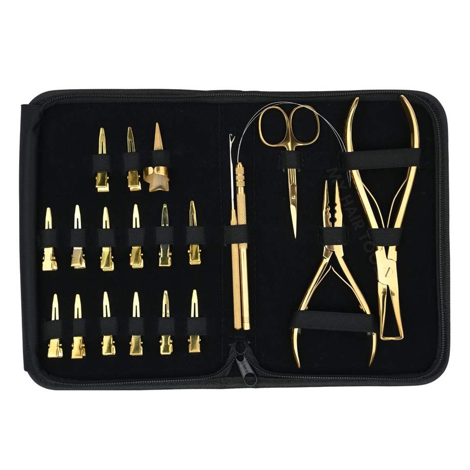 1 estuche de alicates para extensiones de cabello, gancho de alimentación, tijeras de corte
