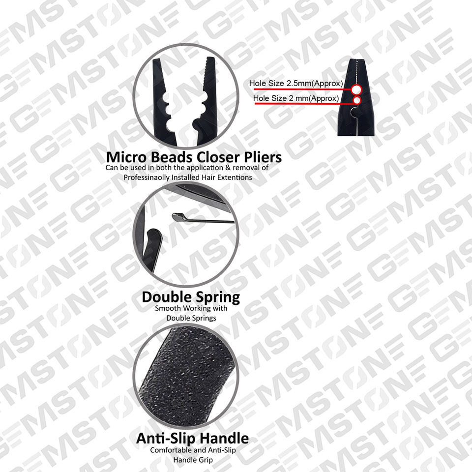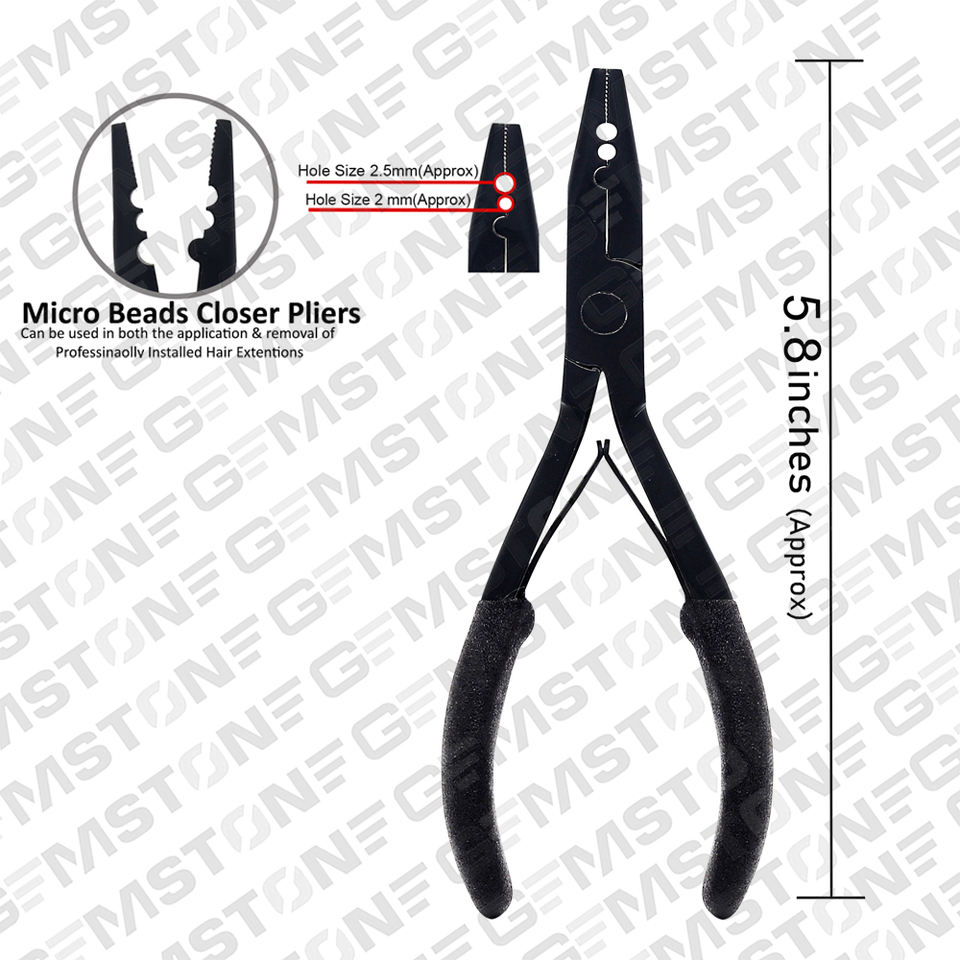 Pinzas de Acero Inoxidable para Extensiones de Cabello – Herramienta Cerradora de Micro/Nano Beads de 2 Orificios, Acabado Negro Mate Multifuncional