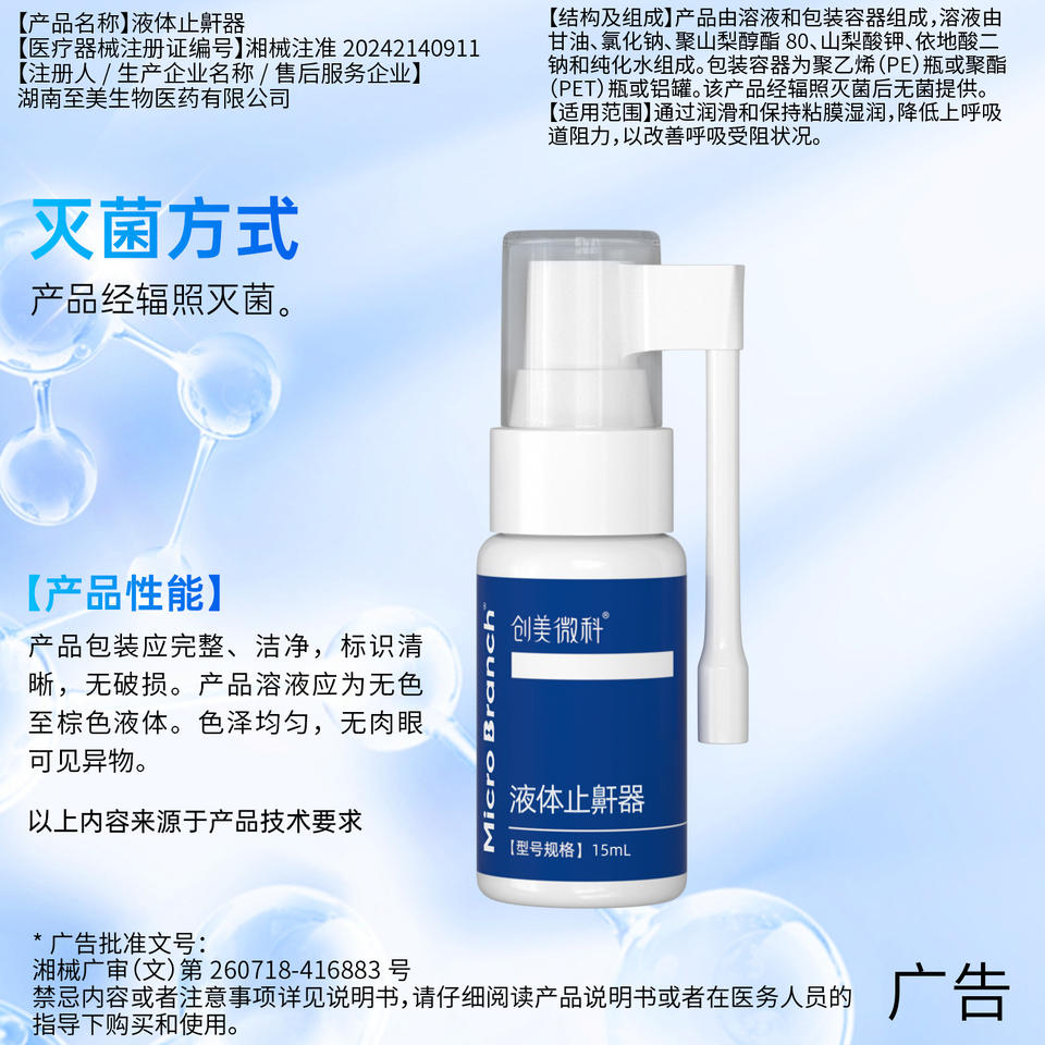 Dispositivo Líquido Anti Ronquidos Micro Branch 15ml de Grado Médico para Alivio del Ronquido y Apoyo Respiratorio