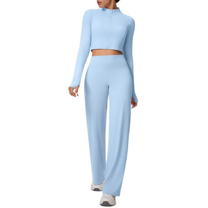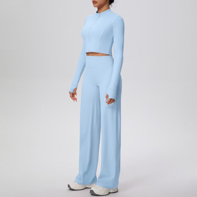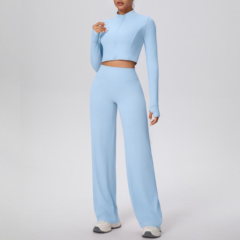 Conjunto de 2 Piezas para Mujer: Chaqueta con Cierre y Pantalones Rectos Holgados, Color Sólido, Transpirable y con Microcepillado, para Deportes, Running, Yoga y Fitness