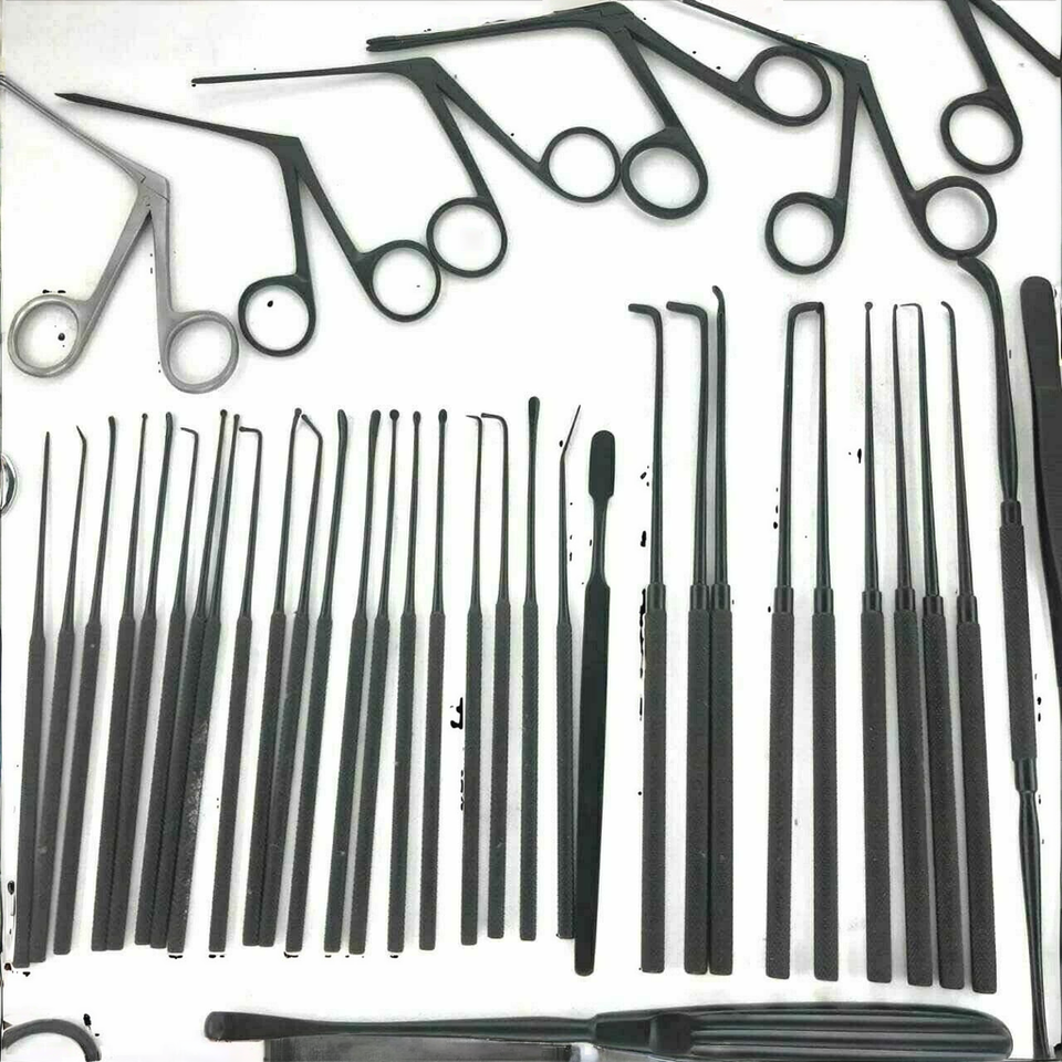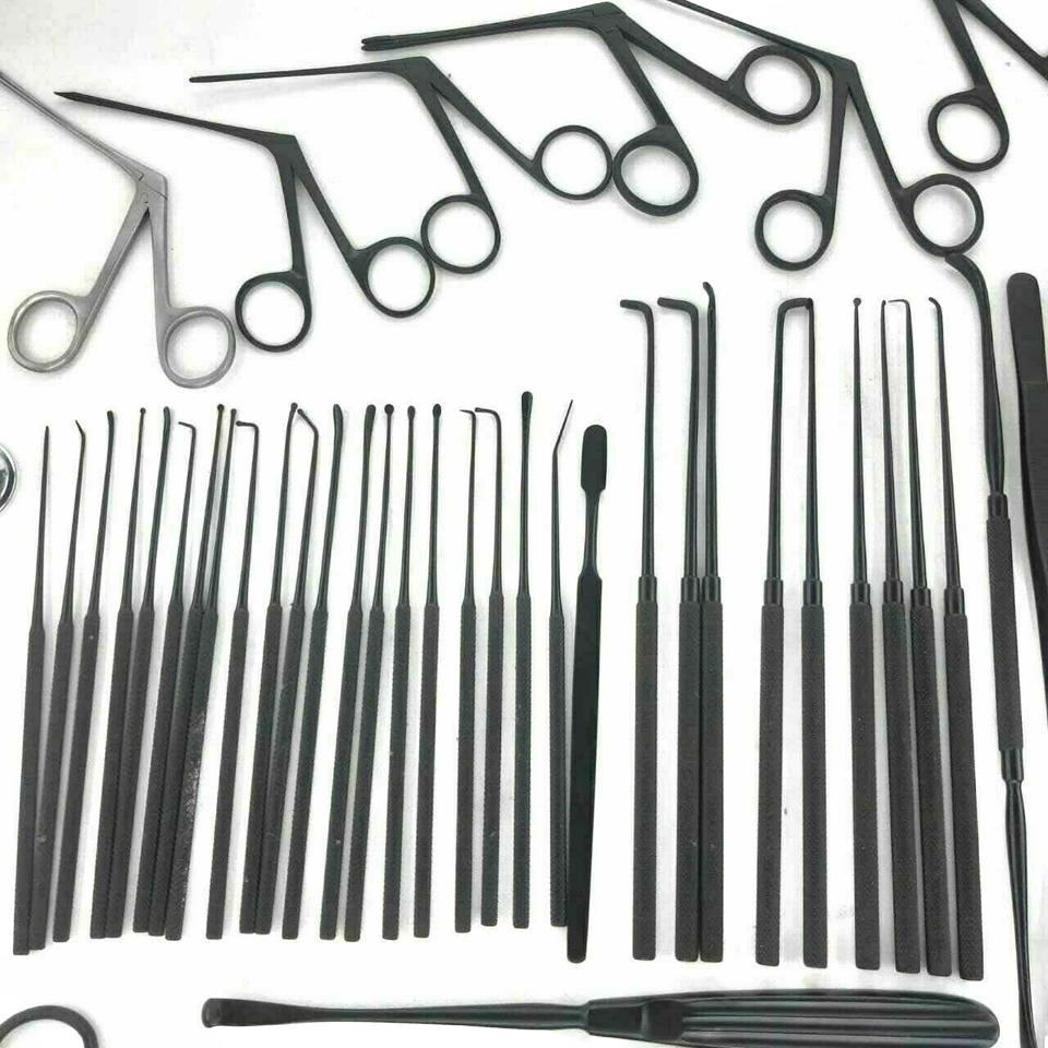 Micro Cirugía del oído ENT Instrumentos Set TYMPANOPLASTIA INSTRUMENTOS COLOR NEGRO Manual Fuente de alimentación Kit quirúrgico