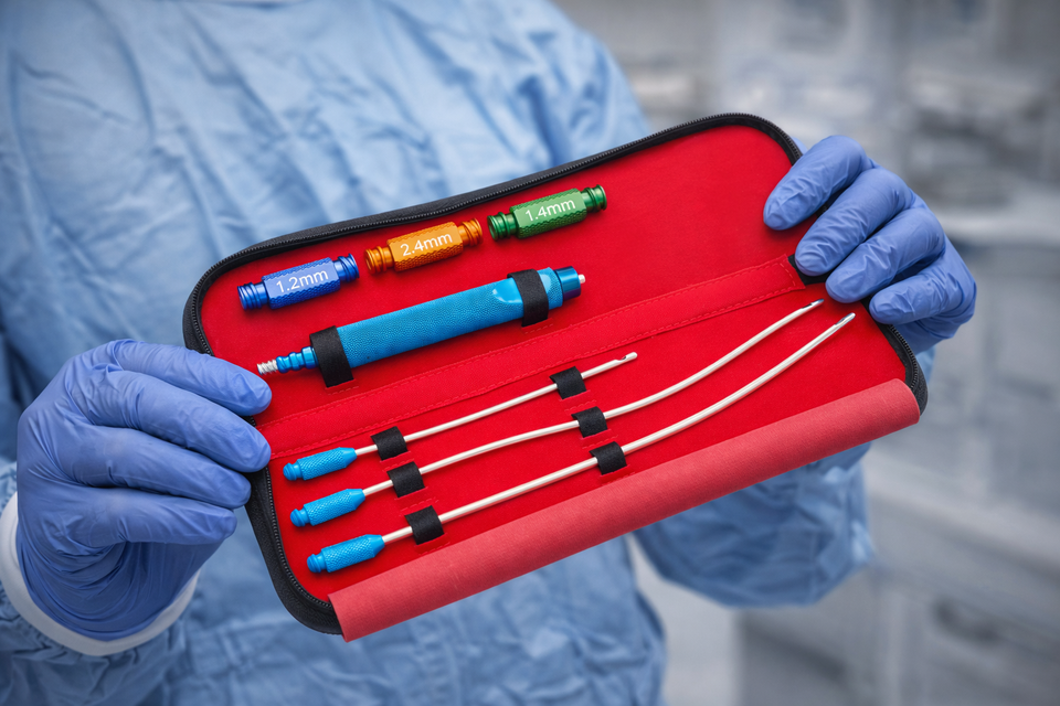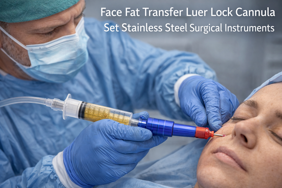 Juego de cánulas de microtransferencia de grasa con mango y adaptadores de tamaño codificados por colores para cirugía estética