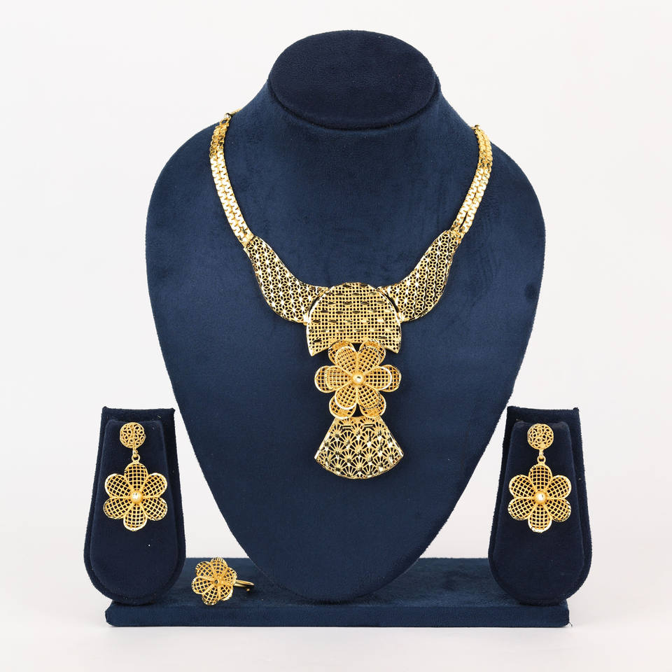 Conjunto de collar de Chapado en oro de cobre y latón chapado en oro microformado, joyería de moda para mujer, ocasiones de boda
