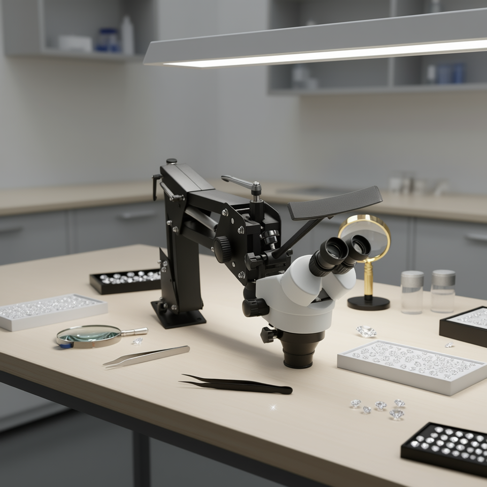 Microscopio estéreo 7X-45X con enfoque manual y soporte de resorte multidireccional para inspección de gemas y diamantes