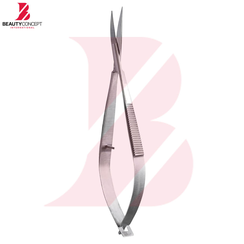 Microtijeras de color plateado con extremos dorados, instrumento de belleza de calidad premium, 5.5 pulgadas, cuchillas rectas, tijeras de belleza con resorte.