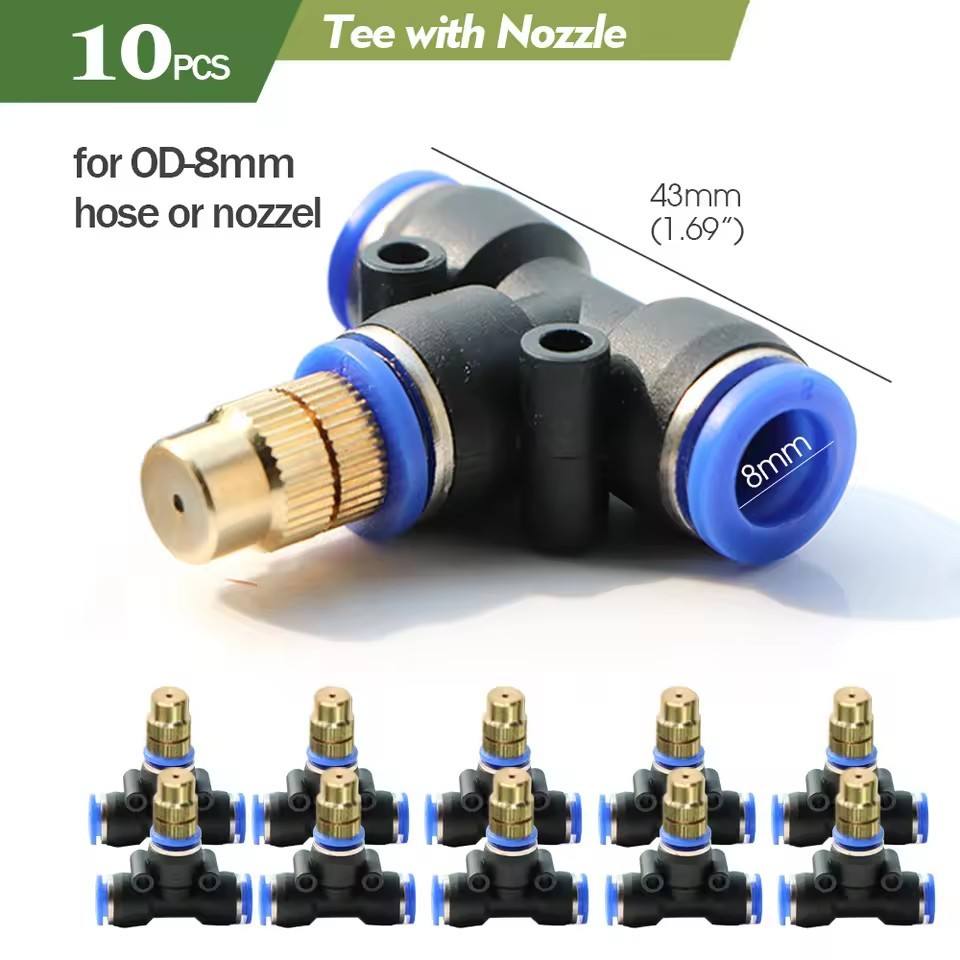10 tees de conexión rápida con boquillas de cobre de 8 mm