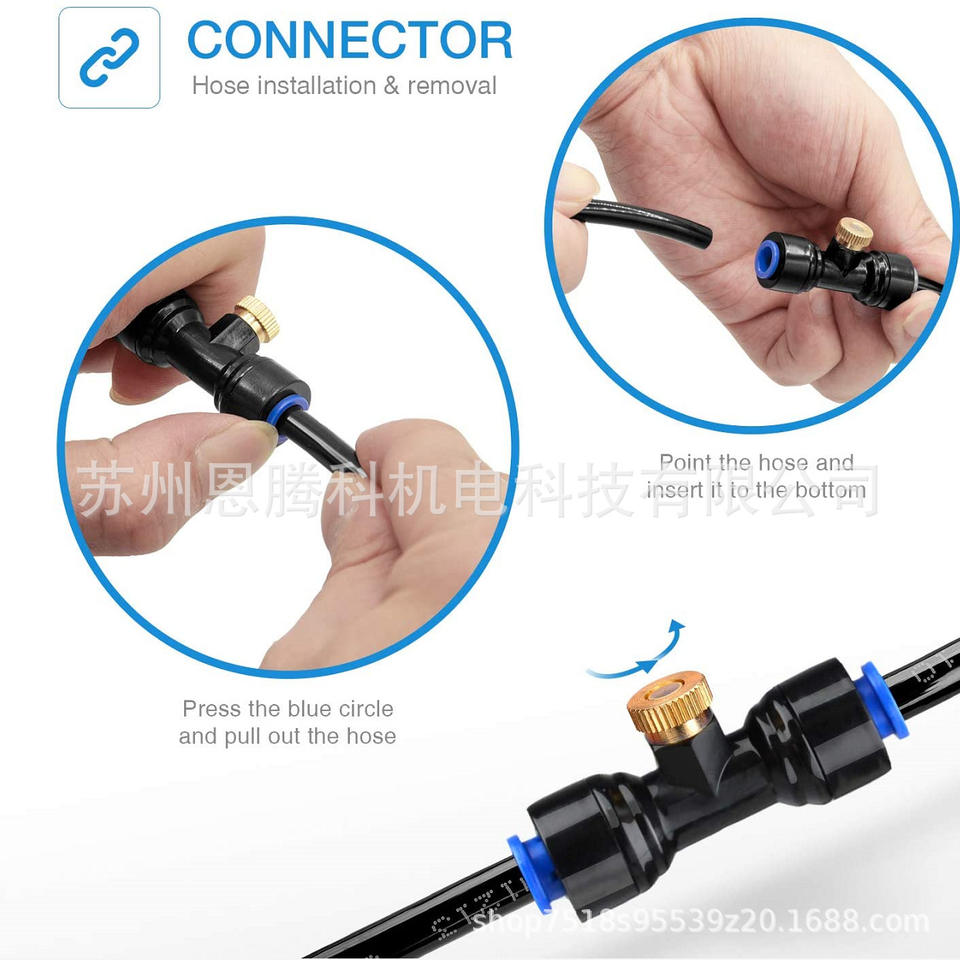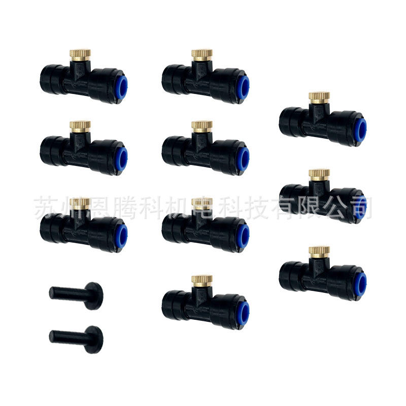 Sistema de Microaspersión con Conexiones en T y Válvula de Latón en Negro y Azul para Riego de Jardín y Enfriamiento Exterior, Presión de 2-3 Kg