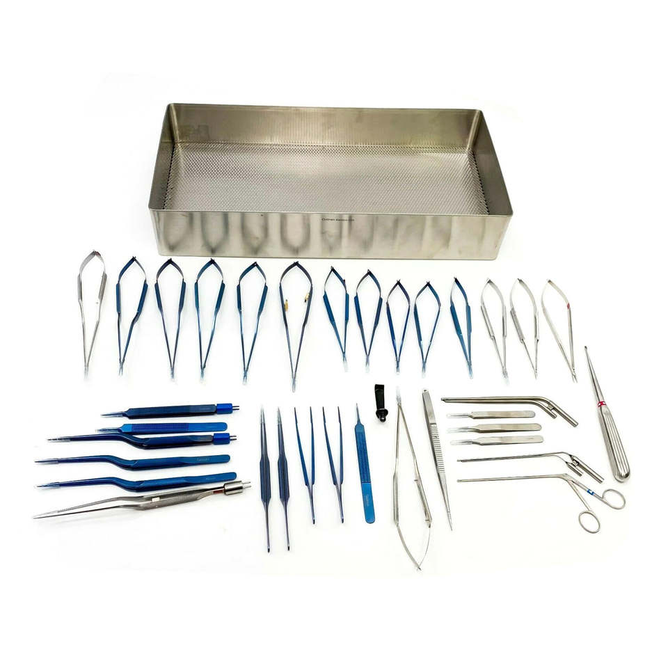 Juego Básico de Microcirugía, Instrumentos Quirúrgicos Manuales de Acero Inoxidable con Mango Plano, Aprobado por CE, Clase II, 2 Años de Garantía, MOL