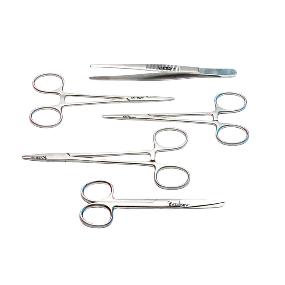 Juego de instrumentos de microcirugía Kit de herramientas veterinarias dentales quirúrgicas de 5 piezas con casete de esterilización