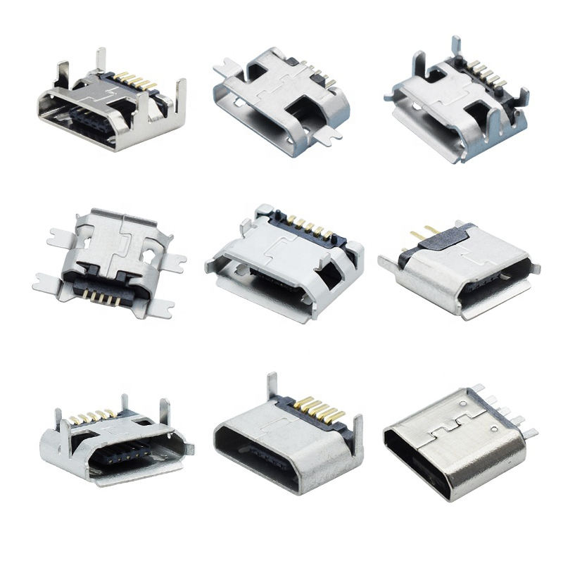 Conector USB Micro USB de 5 Pines Hembra, Tipo B, Boca Plana, 0.8mm, con Orificio Cincado