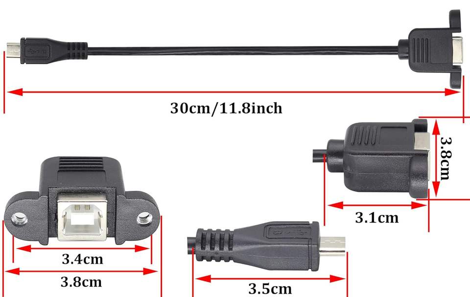 Cable de Impresora Micro USB, Cable Micro USB a B Hembra, Cable de Extensión Micro USB Macho a Tipo B Hembra para Montaje en Panel con Tornillos