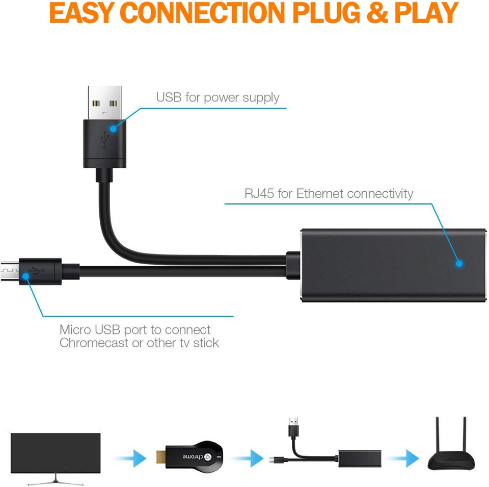 Adaptador Micro USB a RJ45 Ethernet con Cable de Alimentación USB (1 Metro)
