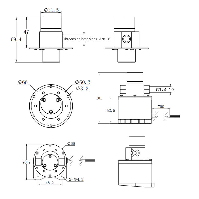 Sello Estático:PTFE (juntas), EPDM (juntas tóricas)