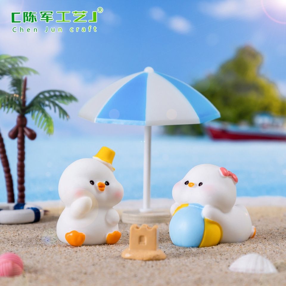 Micro-Paisaje lindo verano playa pato muñeca sueño decoraciones accesorios escritorio coche pequeños adornos