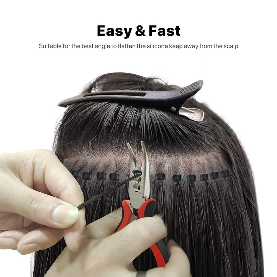 Juego de extensiones de cabello con tres agujeros, alicates con cuentas desmontables, enhebrador, ganchos