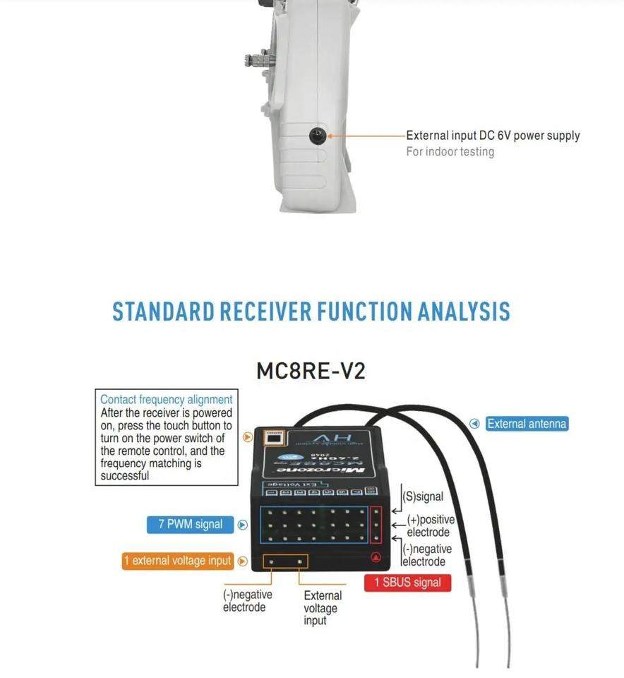 MicroZone MC7 C7 MINI Controlador Transmisor de 2.4G con Sistema de Radio Receptor MC8RE para Aviones RC Drones Multirotores Helicópteros