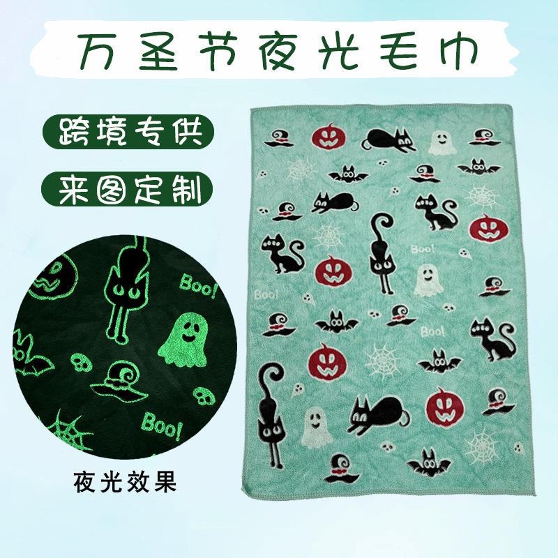 Toalla de microfibra que brilla en la oscuridad, 40x60cm, regalo luminoso de Halloween, decoración rectangular para interiores