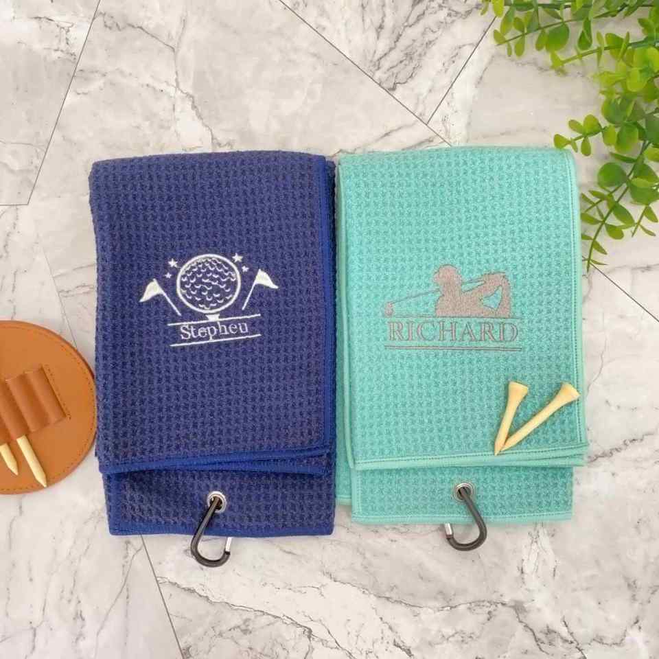 Toalla de microfibra con diseño de gofres para bolsas de golf, para hombres y mujeres, esenciales para la pesca, regalos con mosquetón