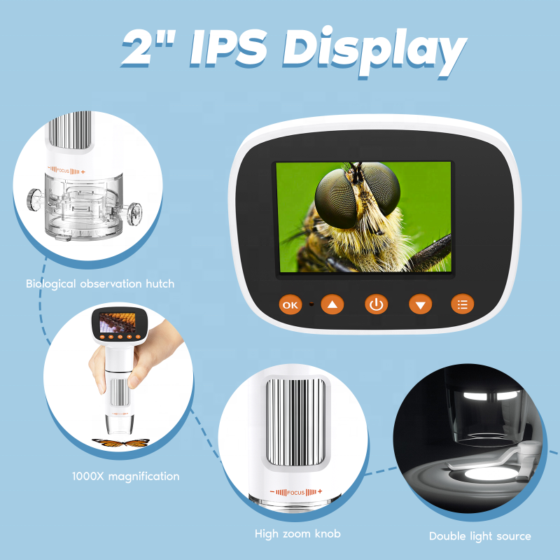 Microscopio Electrónico USB Microlong CM3 1000X con Pantalla LCD IPS de 2 Pulgadas 1080P, Cámara de Inspección, Microscopio Estéreo 8