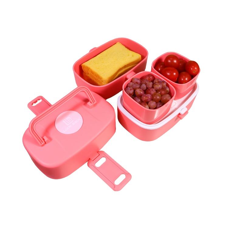 Microondas hombre Rectangular Biodegradable de plástico del paquete de 3 capas de prueba de fugas de bloqueo coreano pastel Rosa