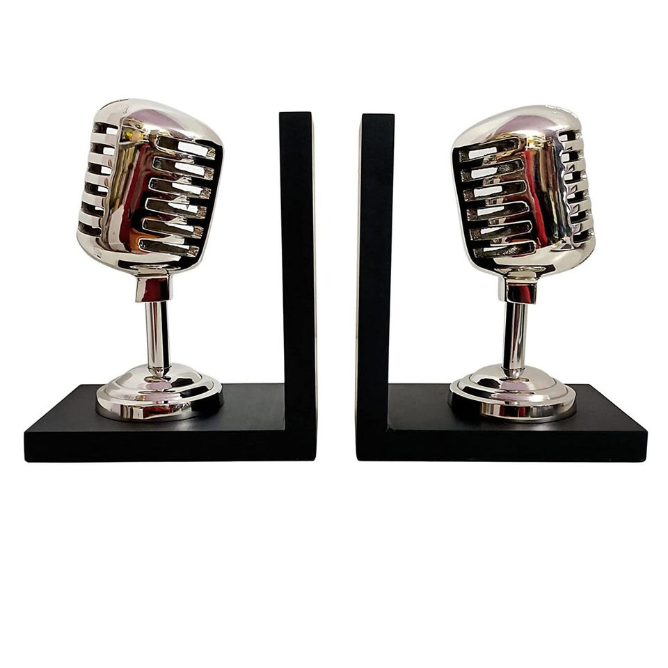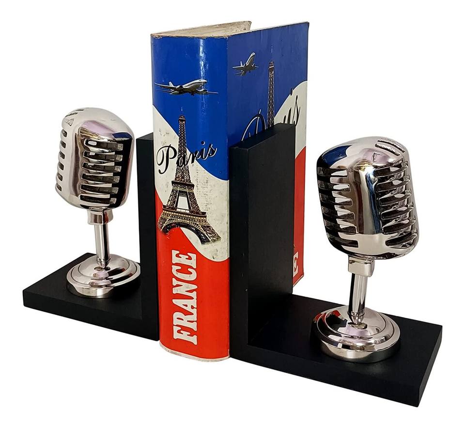 Sujetalibros de aluminio con forma de micrófono, organizador de libros para biblioteca, escuela, oficina, estudio en casa, organizador de escritorio, regalo