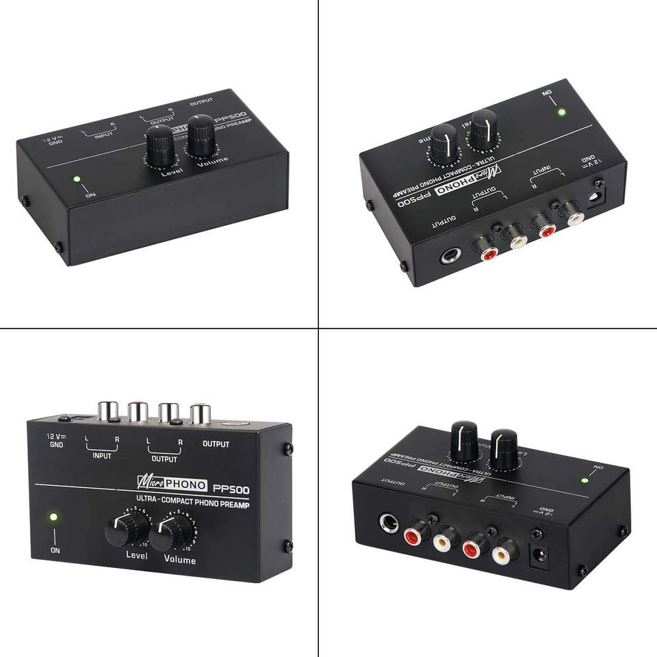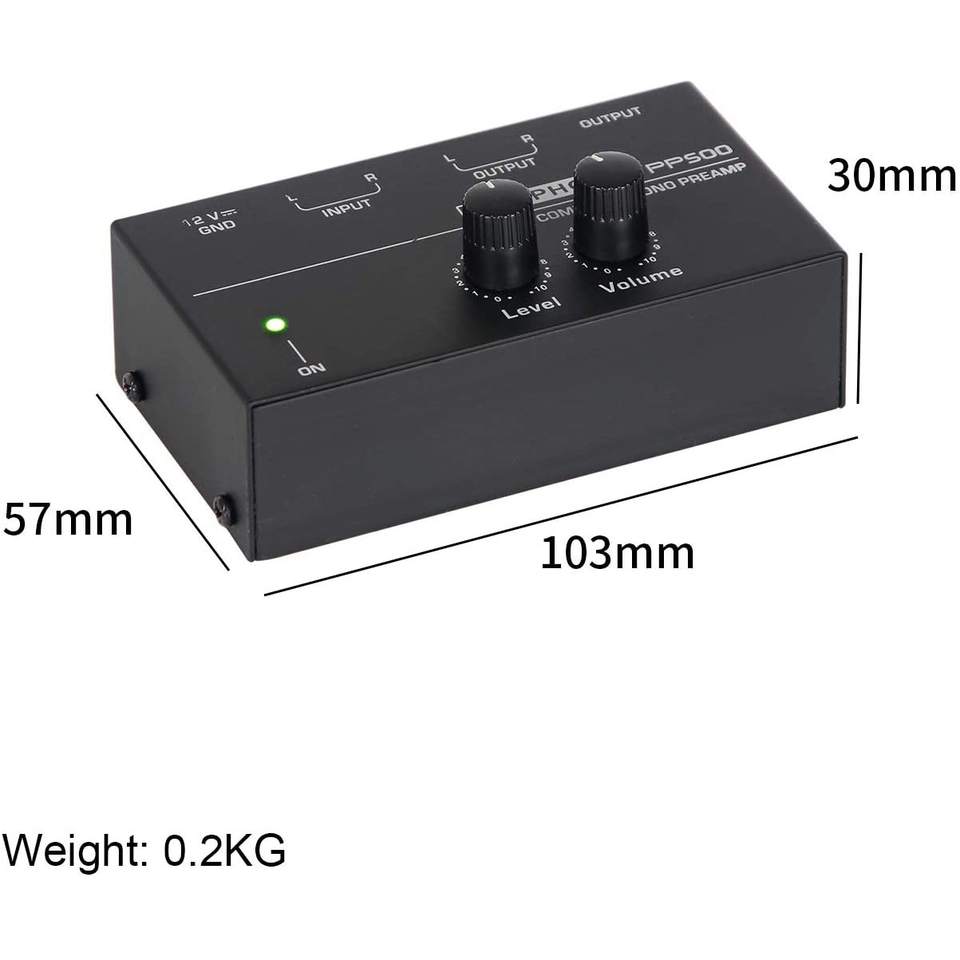 Preamplificador de Phono Ultracompacto Microphono PPS500 con Controles de Nivel y Volumen para Tocadiscos