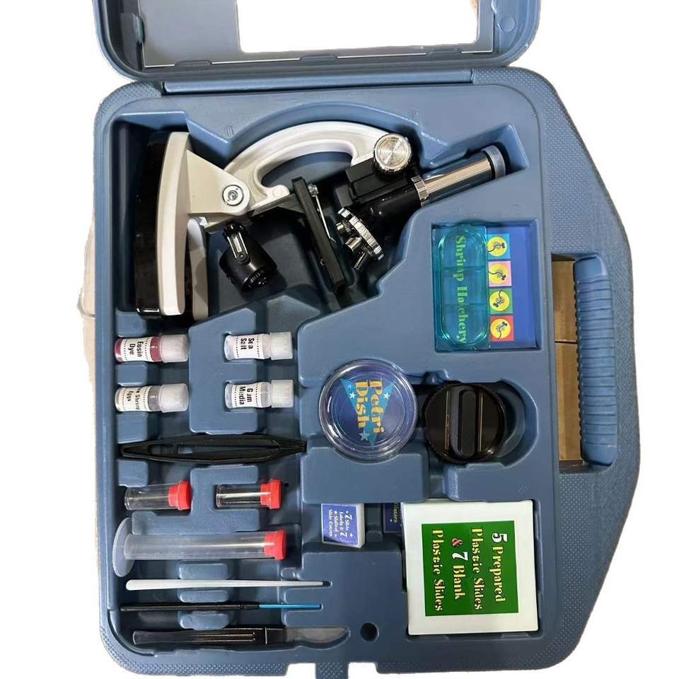 Microscopio óptico 1200X para investigación científica y enseñanza, material plástico con portaplatinas y accesorios