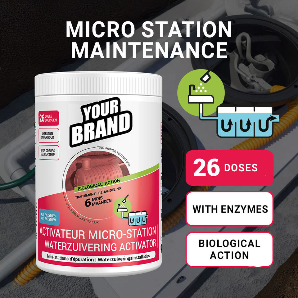 Microstation, Sistema Ecológico para la Prevención de Obstrucciones por Grasa y Olores, Polvo para Desatascar Tuberías, Solución para Aguas Residuales