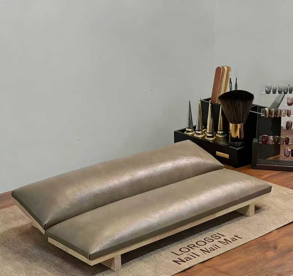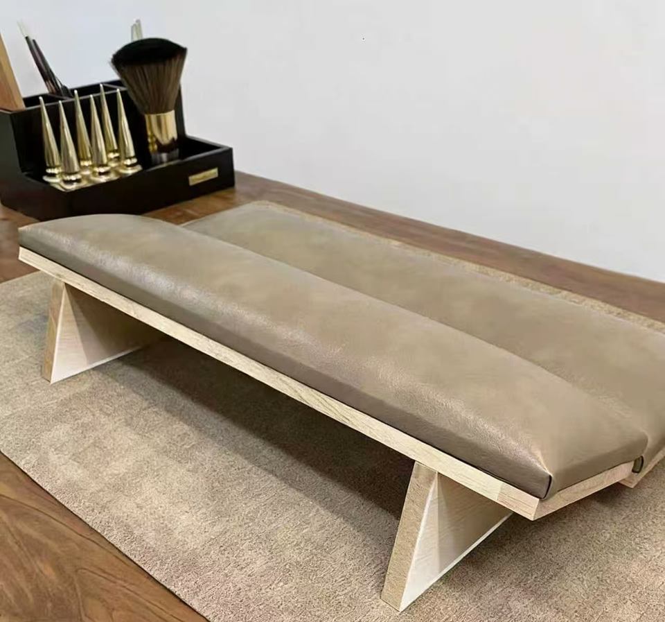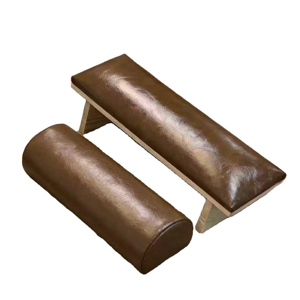 Almohada de mano de estilo antiguo para manicura, inclinada, antideslizante, de madera y cuero, con soporte para manos, para aliviar la fatiga