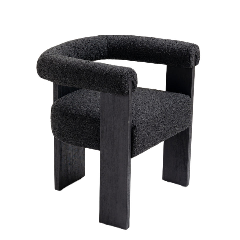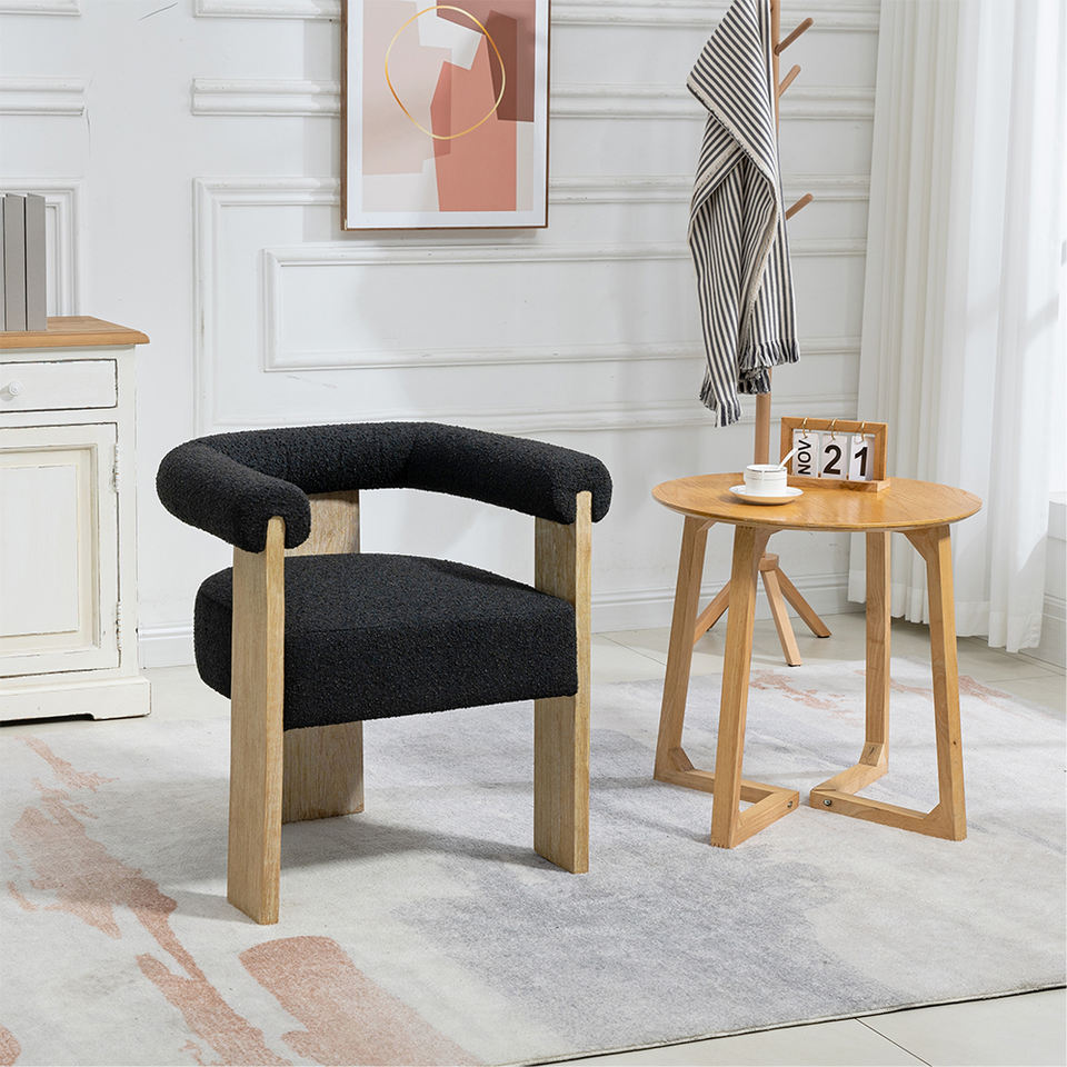 Silla de Comedor de Estilo Contemporáneo de Mediados de Siglo, de Alta Calidad, con Forma Personalizada, Tapizada en Tela Bouclé y Madera de Caucho, Silla Tapizada en Terciopelo para el Hogar