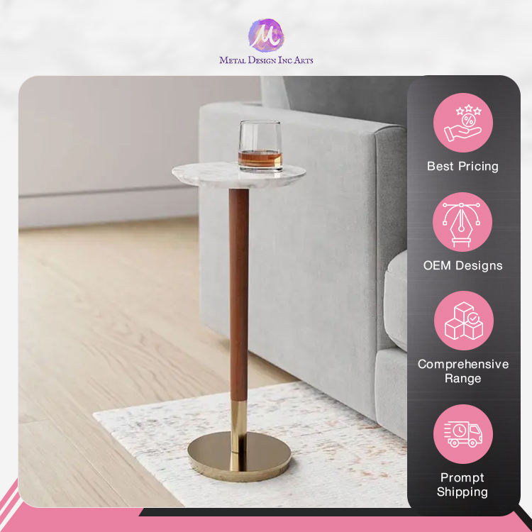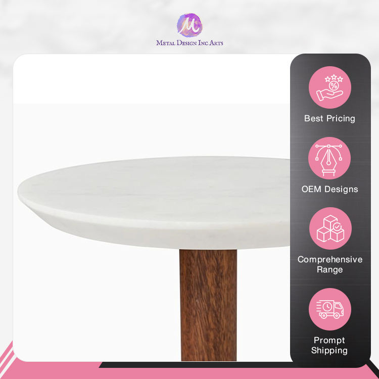 Mid Century Modern Classic Design Mesa de bebidas de nogal blanco sólido Latón Acacia Madera y mármol Hecho 22 pulgadas Muebles para el hogar